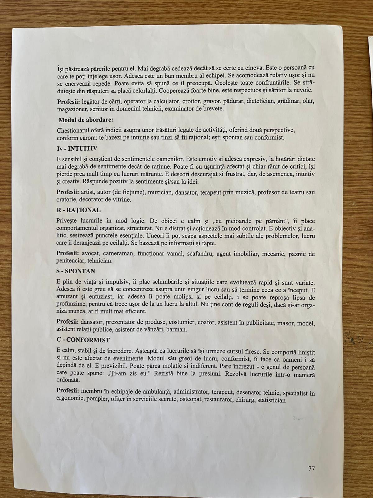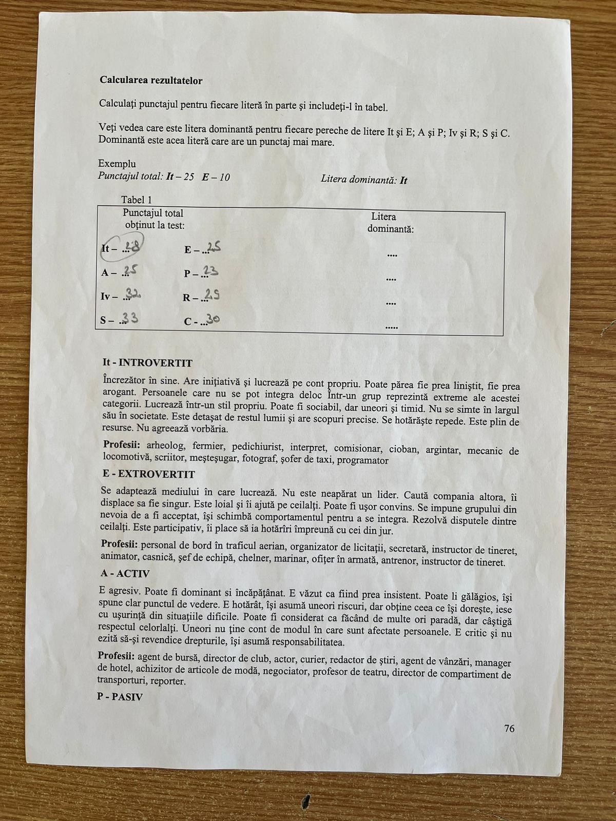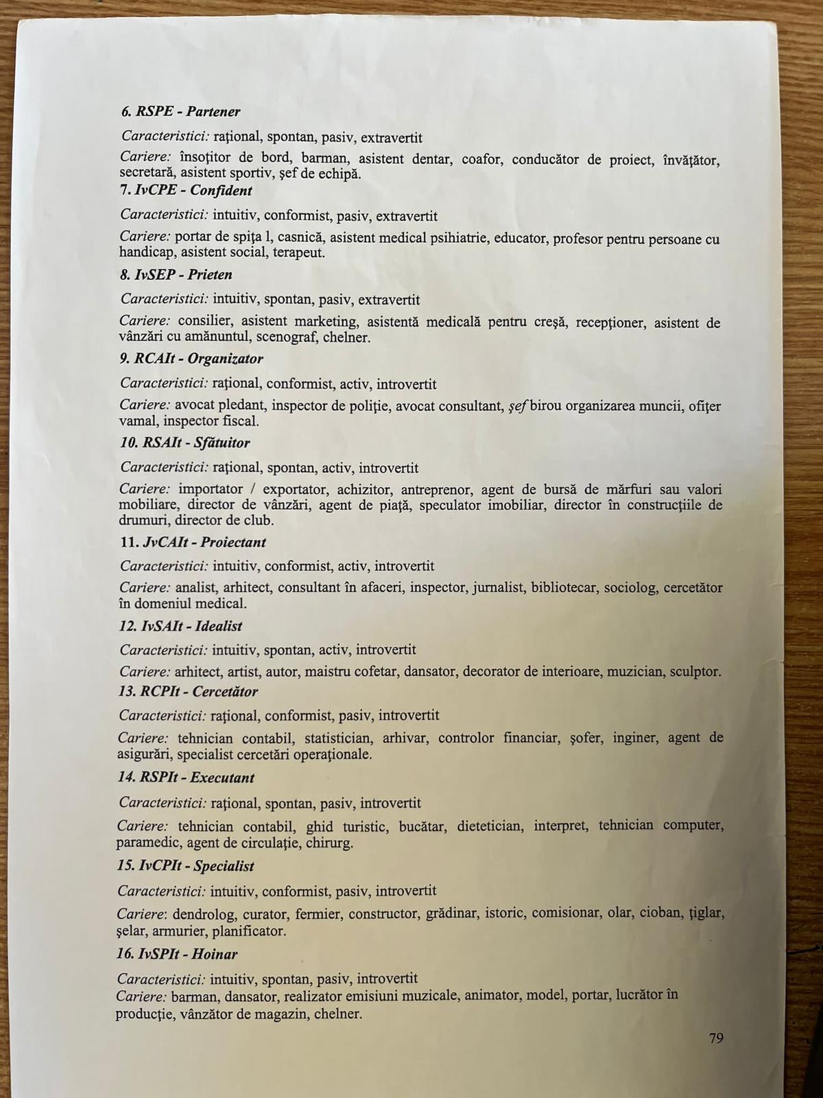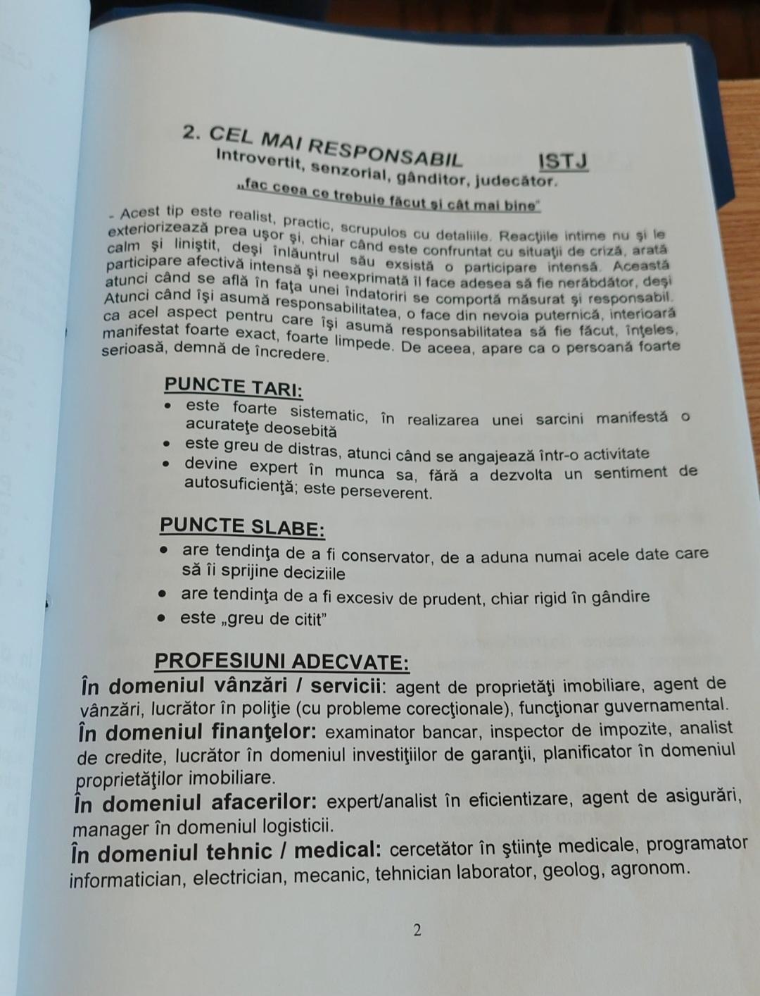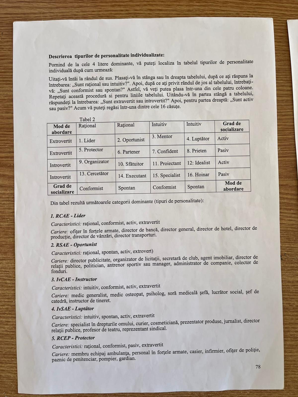 Iată cum arată niște teste de personalitate văzute de Panorama, care ar trebui să ajute elevi de clasa a XI-a să își identifice posibile cariere: