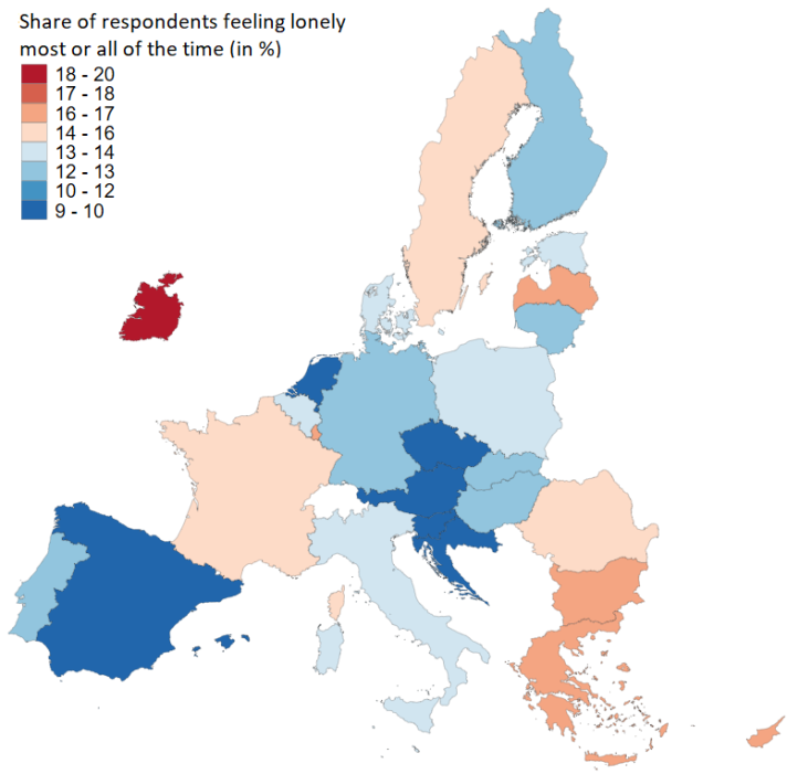 - 13% dintre cetățenii UE s-au simțit singuri foarte des sau tot timpul, în ultimele patru săptămâni, arată un studiu făcut de Comisia Europeană acum doi ani.