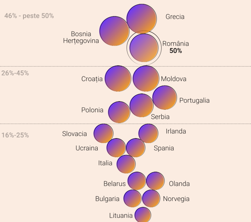 România este în topul statelor europene când vine vorba despre importanța religiei pentru membrii societății. Mai mult de jumătate dintre români spun că religia are un rol puternic în viața lor de zi cu zi. Este o credință pe care o regăsim în întreaga zonă a Balcanilor, unde Grecia conduce clasamentul. Infograficul realizat de Edit Gyenge ne arată imaginea Europei religioase.