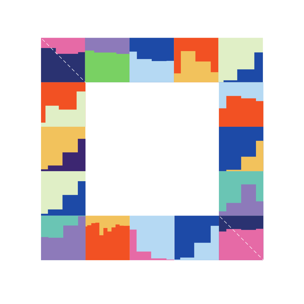 Each square represents the 10-year evolution of an indicator.