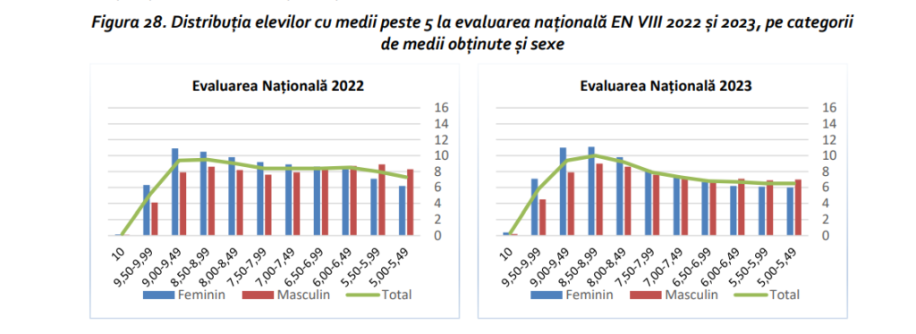 În ambele cazuri, fetele sunt cele care au rată de promovare mult mai mare față de băieți, cu o diferență de aproximativ 10 procente (52,5% pentru fete, respectiv de 38,2% pentru băieți).