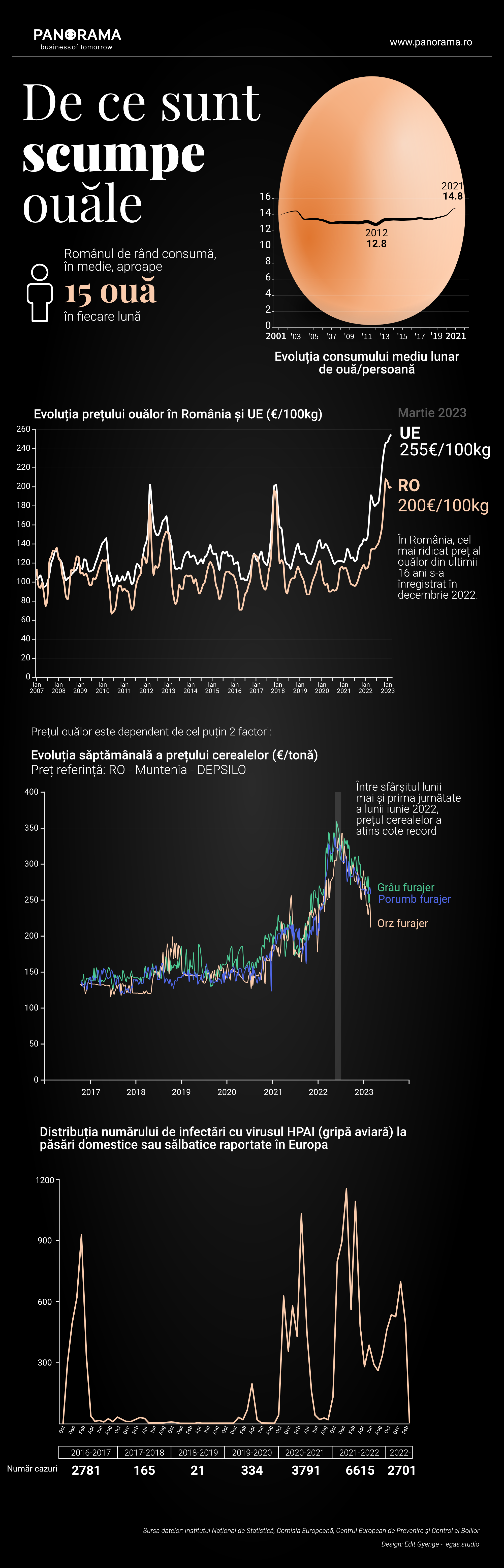 Suprapusă peste criza din Ucraina și pandemie este și o creștere a incidenței gripei aviare în statele europene. În anul epidemiologic 2021-2022, s-au înregistrat în Europa peste 6.600 de cazuri de gripă aviară la păsări, potrivit Centrului European de Prevenire și Control al Bolilor. Iar asta a contribuit, de asemenea, la prețurile mari pe care le plătim pentru ouă.