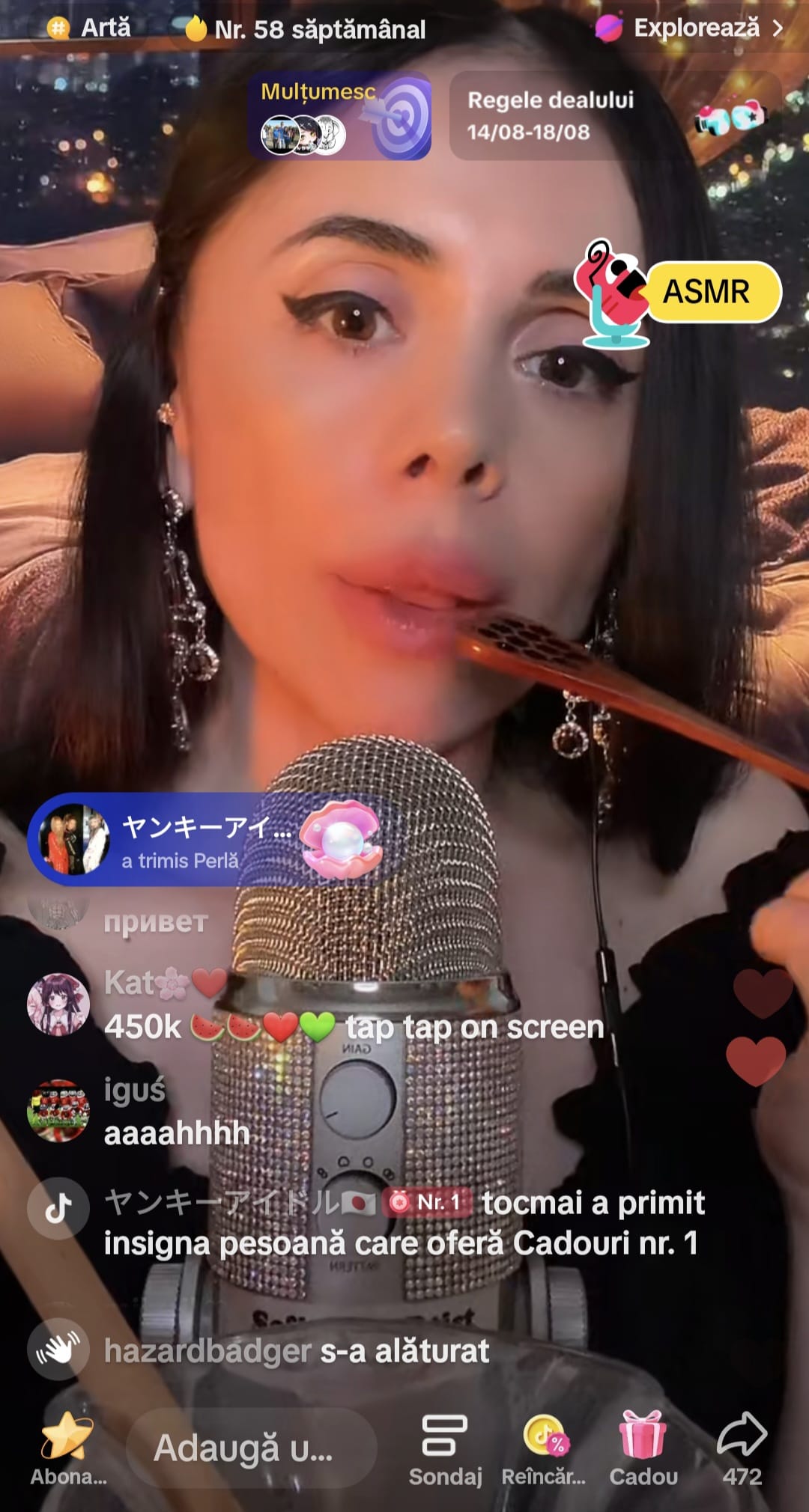Un TikToker cu puțin peste jumătate de milion de urmăritori face între 20 și 300 de dolari pe un singur live ASMR, după cum explica unul dintre ei pentru The Insider.