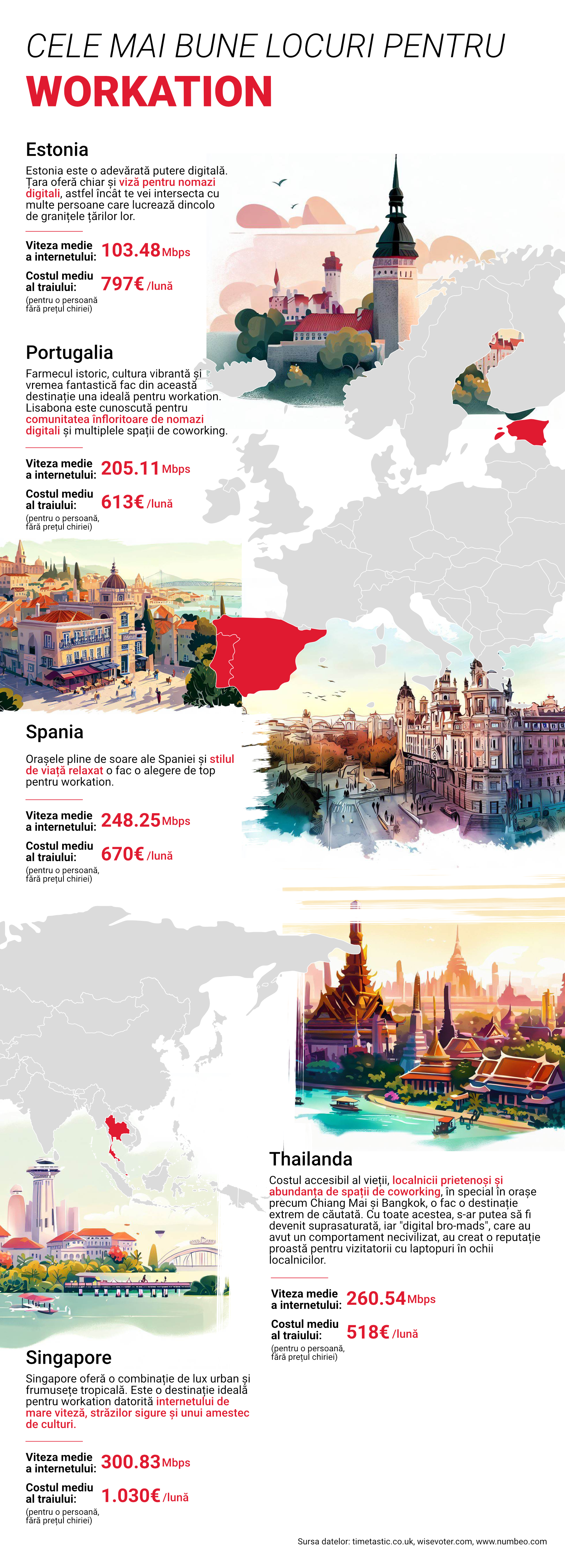 Căci, evident, nu te poți bucura de acest tip de vacanță hibrid din cele mai remote locuri sau acolo unde instrumentele esențiale lipsesc cu desăvârșire: o locuință care să includă și un spațiu pentru birou și, cel mai important, o conexiune bună la Internet. Ca fapt divers, printre destinațiile europene pe care le propune Workation.com, apare pe listă și Bucureștiul.